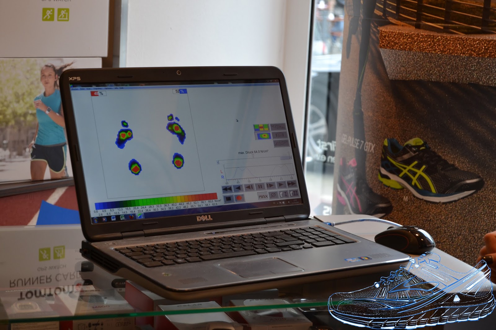 Meine Füße wurden vermessen und mein Fußabdruck getestet. Wie man auf dem Bild gut erkennen kann, nutze ich meine Füße zu wenig und habe zu wenig Auftritt-Fläche. Daran sollte ich mit Fußgymnastik und meinen Einlagen arbeiten 🙂