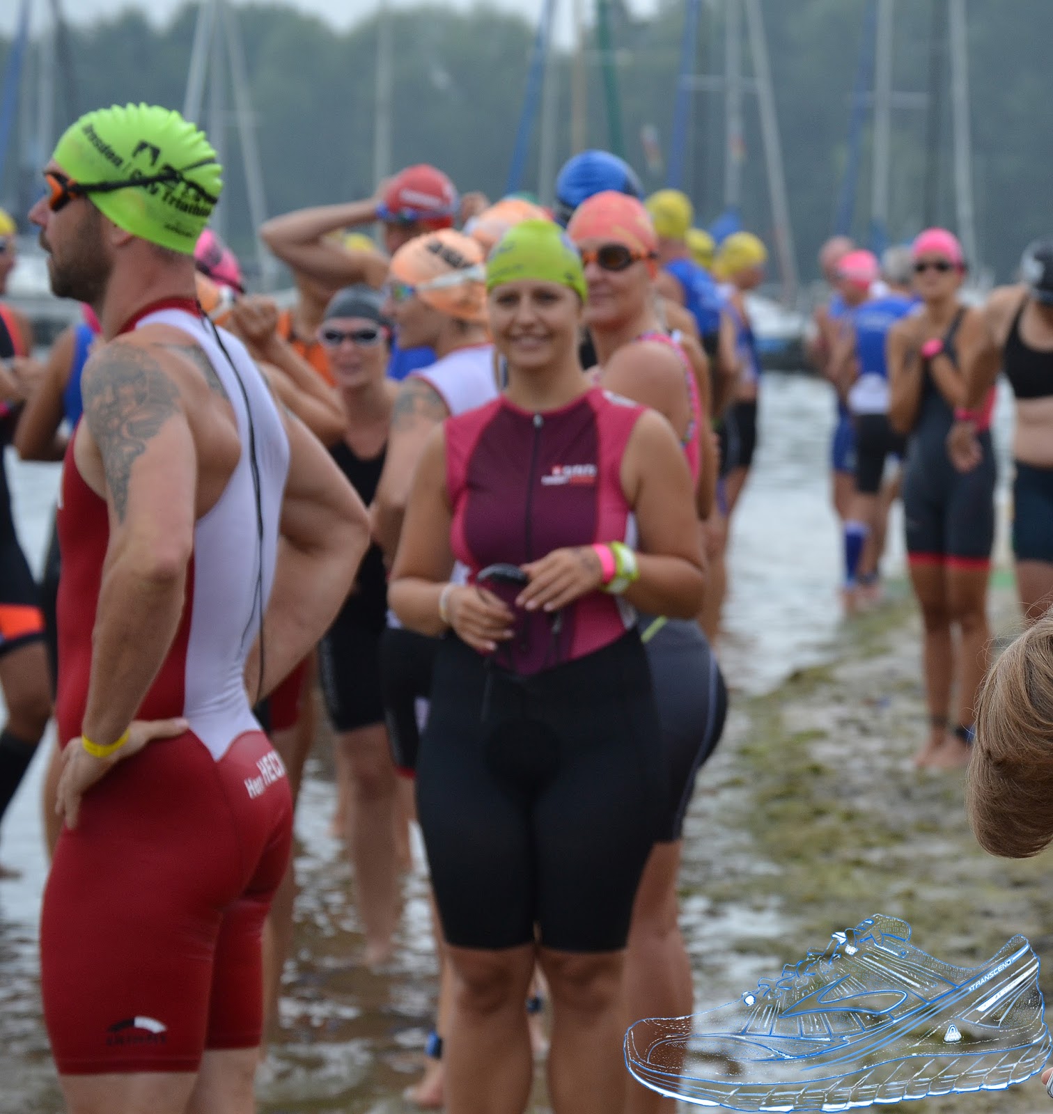 Ohne Neo ging es also pünktlich um 09:50 Uhr zum Start. Wir Frauen sollten per Landstart vor den Männern in einer Gruppe starten. Ich entschied, mich beim Schwimmen schon so gut wie möglich im Hintergrund zu halten um im Gewusel nicht plötzlich unterzugehen.